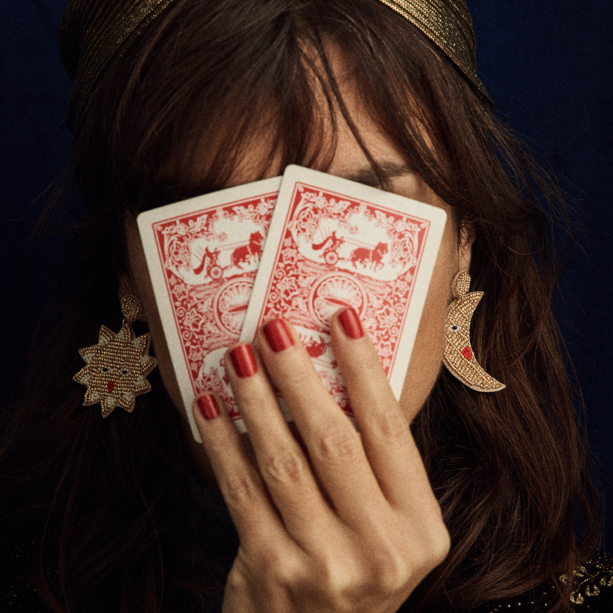 Composées d’un délicat croissant de lune pour une oreille et d’un soleil rayonnant pour l’autre, ces boucles incarnent la dualité harmonieuse de la collection La Bonne Aventure. Les perles dorées, fines et lumineuses, captent la lumière et apportent une touche d’éclat subtil au visage. Leur design poétique évoque les énergies complémentaires et la beauté des contrastes.