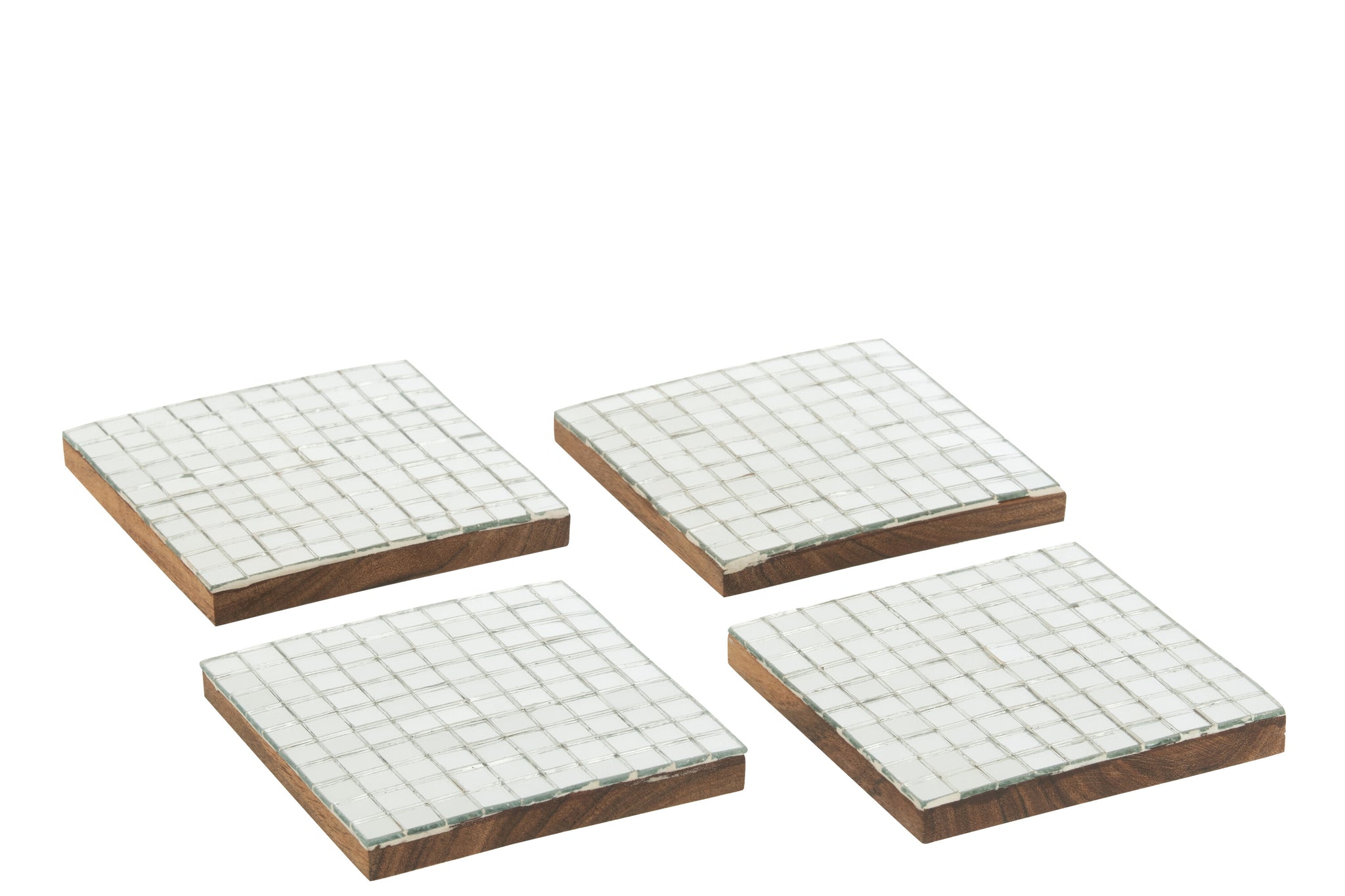 lot de 4 sous-verre en bois avec facettes argentés en verre