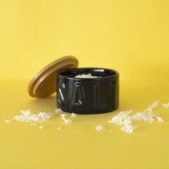 Balvi Flake salt cellar Colour black Elegant container with lid Ceramic/bamboo 4,8x8x8cm. FUNCTIONAL. Ideal to always have salt or other species handy on the table or kitchen counter.DECORATIVE. Its original design with bamboo lid will give your tabl or kitchen an elegant touch.GREAT QUALITY. Manufactured in ceramic and bamboo for greater strength and durability....