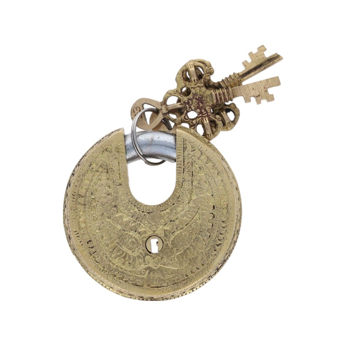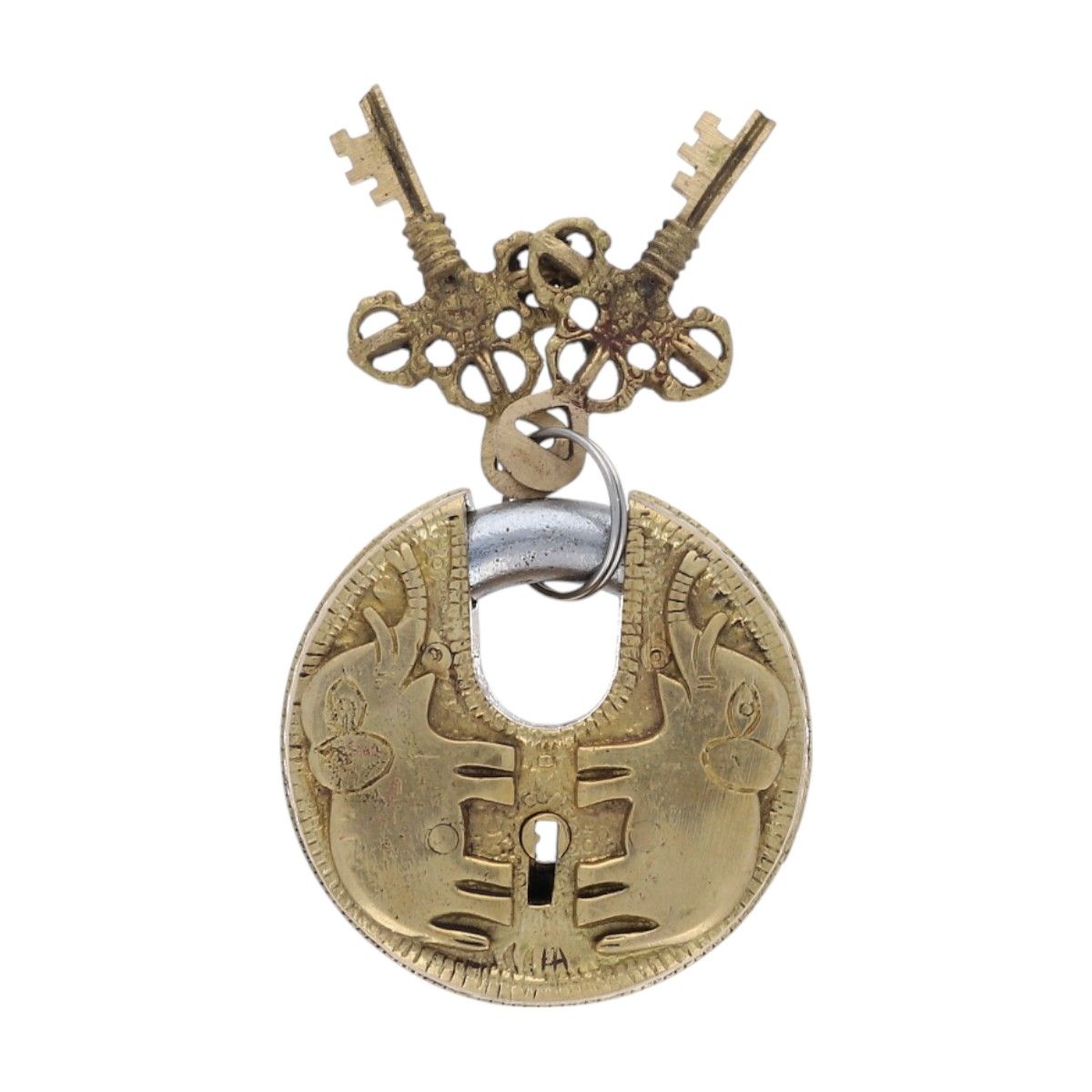 L'oeil est attiré par l’authenticité et l'originalité de ce cadenas indien rond en laiton, entièrement façonné à la main et orné de deux éléphants en relief. Symbole de sagesse, de force et de protection, l’éléphant occupe une place centrale dans la culture indienne, et c’est ce que ce cadenas raconte à sa façon.