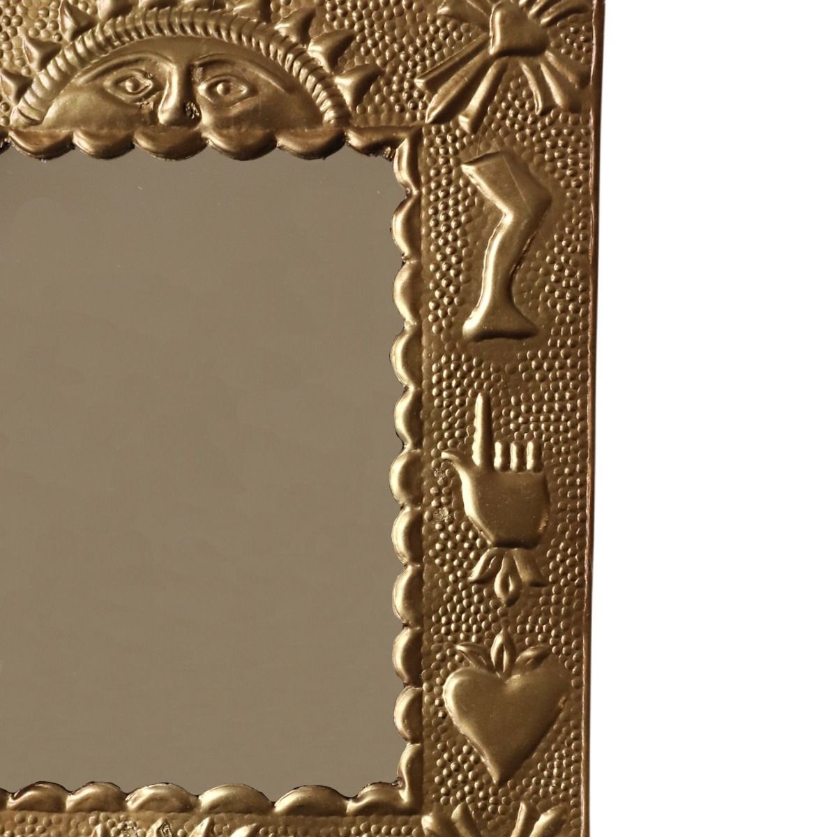 Son cadre finement ciselé en laiton doré capture la lumière et diffuse une douce brillance dans la pièce. Accroché au mur ou posé sur un meuble, il devient un véritable objet déco, à la fois intemporel et raffiné. Parfait pour un intérieur bohème, poétique ou empreint d’une touche spirituelle, ce miroir s’associe joliment avec d’autres décorations en laiton doré, comme les suspensions ou plaques de la même collection.
