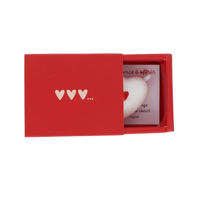 Avec sa couleur douce et sa finition en céramique brillante, ce cœur est rangé dans une petite boîte à glissière. Il pourra être rangé facilement en attendant d'être offert, et faire sensation lorsque son destinataire le découvrira. Un bibelot qui a son importance dans la maison, il se glisse aussi bien sur une étagère que sur la table de chevet. Original et romantique, il transforme chaque moment en un instant mémorable !