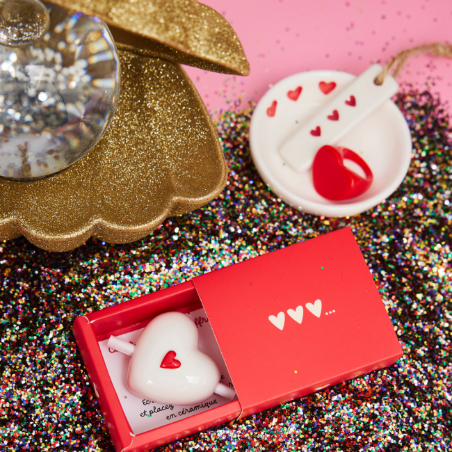 Un joli message à faire passer, un petit mot d'amour à glisser ou une annonce surprise à faire à sa moitié ? Ce petit cœur en céramique blanc et rouge est un objet déco qui fera office de messager parfait pour des annonces remplies d’émotion. À l’intérieur, un petit rouleau de papier attend d’être déplié pour révéler votre surprise : un mot doux, une grande nouvelle, ou une demande spéciale...laissez parler votre coeur !