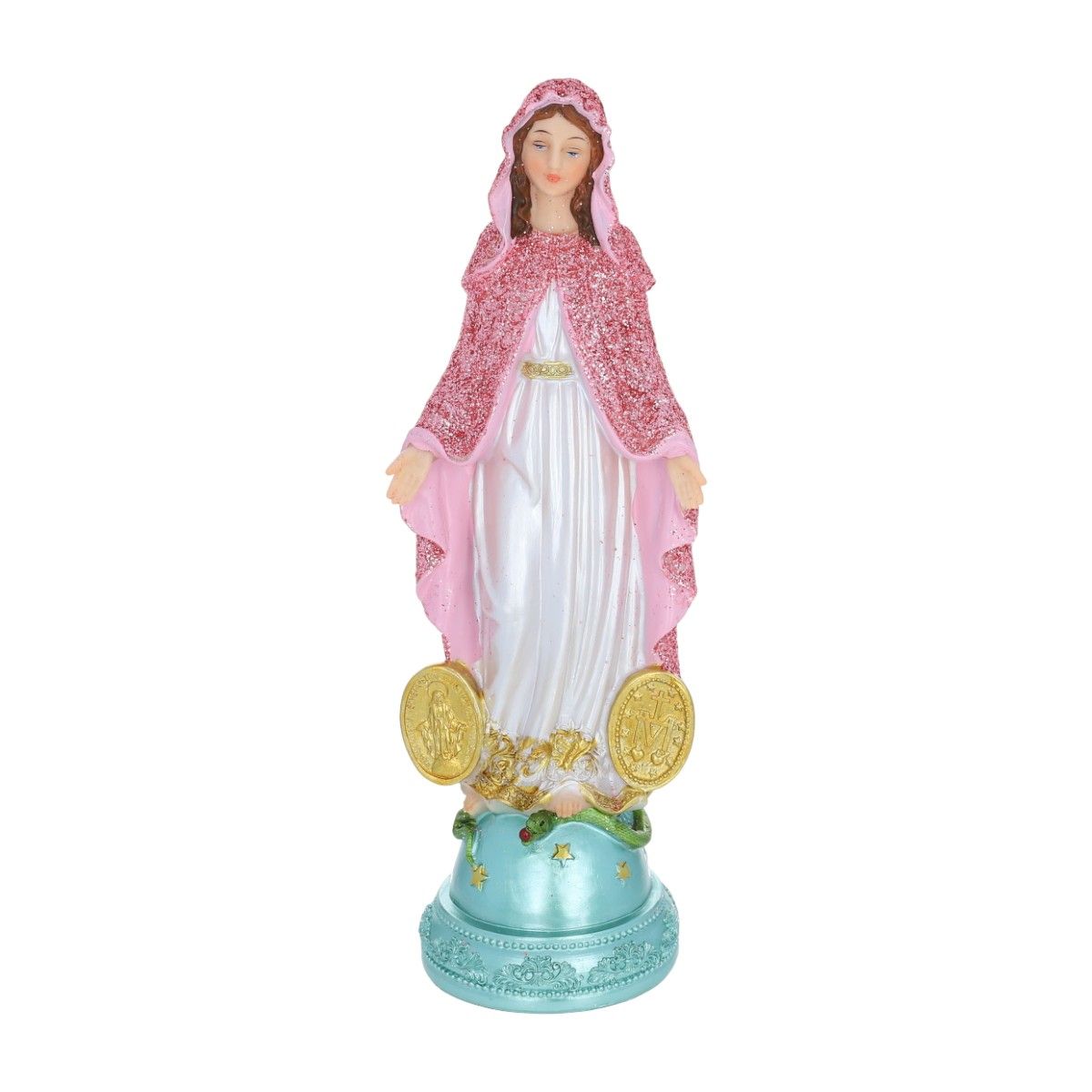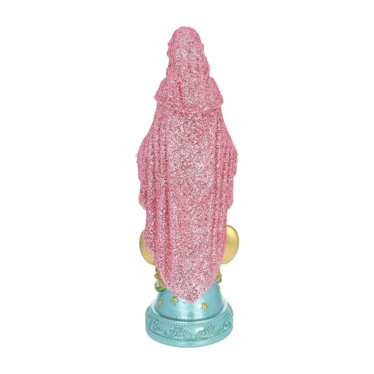 Avec sa finition rose délicate et ses paillettes scintillantes, cette jolie statue de la Vierge devient un véritable objet d’art qui capte la lumière et attire le regard.