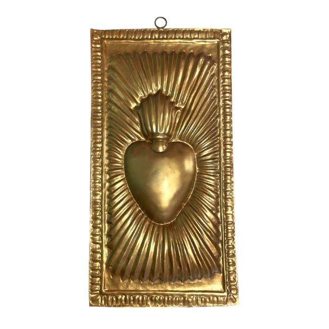 Cette suspension rectangulaire en laiton représente un magnifique coeur ex-voto.