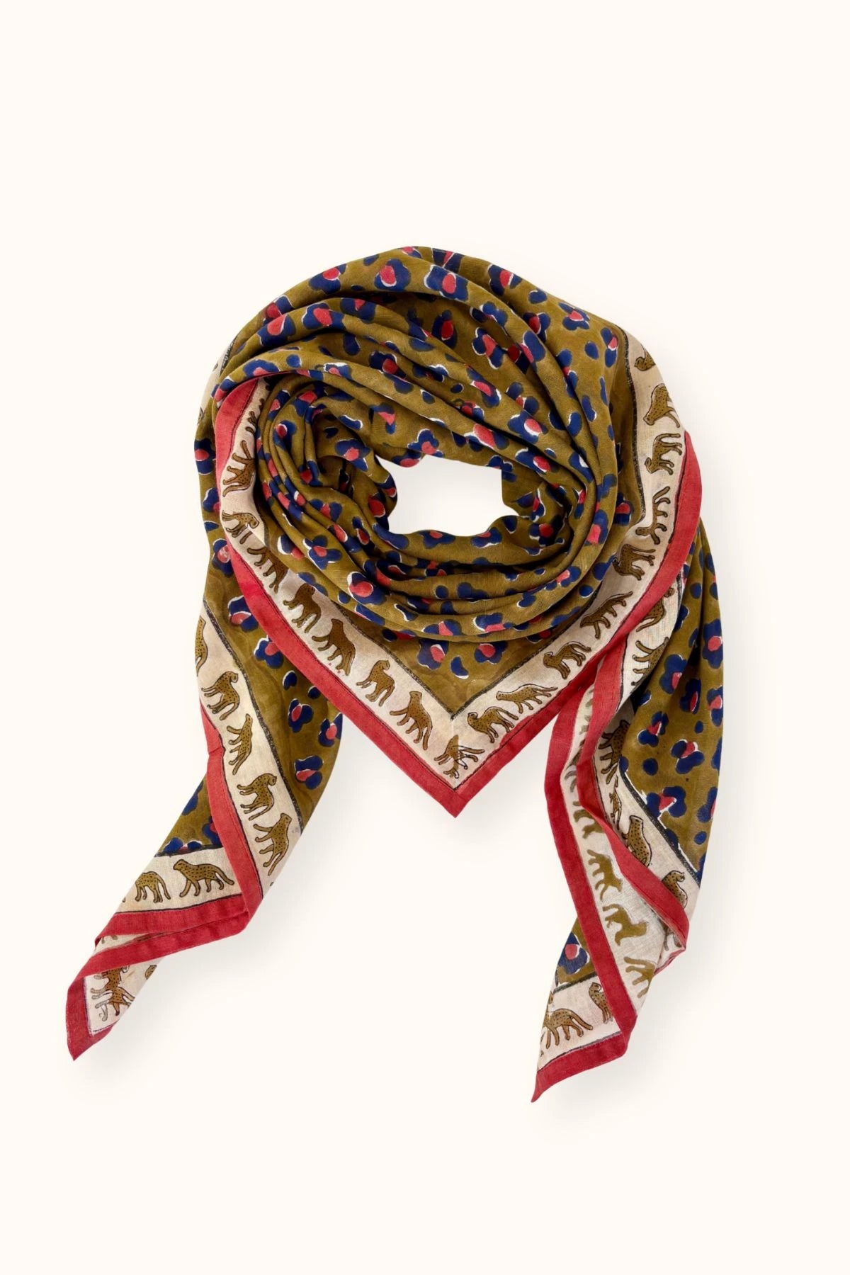 Le foulard DUPATTA se réinvente avec un imprimé léopard tendance. Confectionné en coton léger, il offre un tombé fluide et agréable. Son format XL 100x100 cm permet de le porter de multiples façons. Un indispensable félin et chic qui affine vos tenues au fil des saisons.