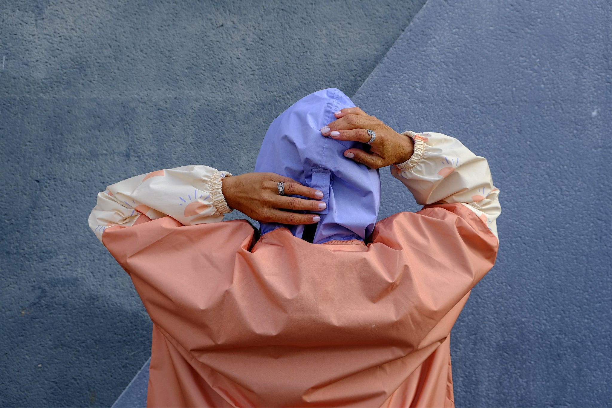 Avec ses couleurs pêche, lila et jaune crème, ce poncho de pluie illumine même les journées les plus grises. Fini les ponchos fades et tristes – le modèle SUNRISE est là pour vous protéger avec style, que ce soit en ville, à vélo, en rando ou même au bord de l’eau.