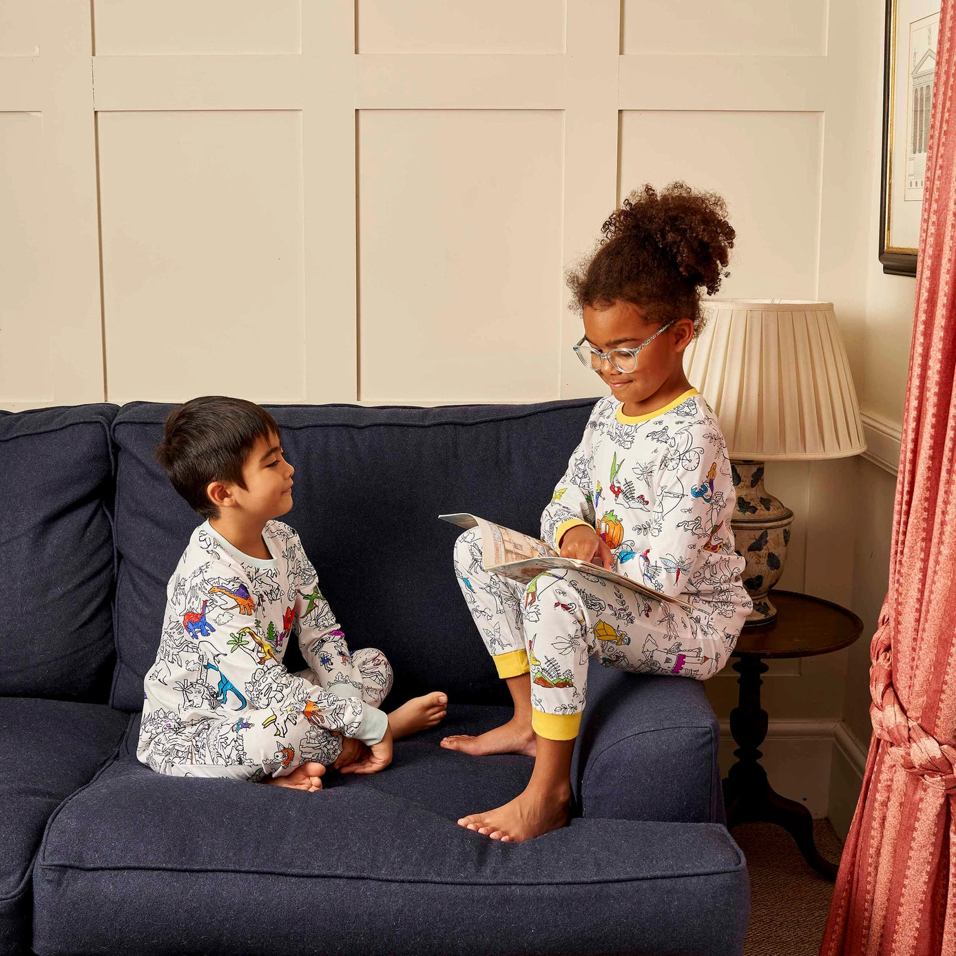 Nos pyjamas à colorier sont doux et douillets au toucher et ces pyjamas de haute qualité sont fabriqués en 100 % jersey de coton simple avec des poignets et des cols colorés. Ils sont livrés dans un joli sac de pyjama à cordon en coton assorti !