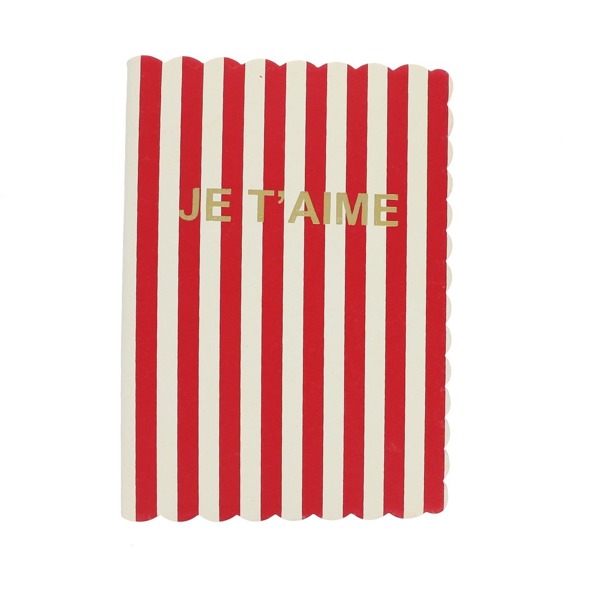 Sa couverture rayée rouge attire tous les regards, tandis que l’inscription "Je t’aime" dorée brille au centre, comme une déclaration discrète mais pleine de tendresse. Le détail qui change tout ? Les coins arrondis, qui apportent une finition douce et soignée, comme des pétales en papier.