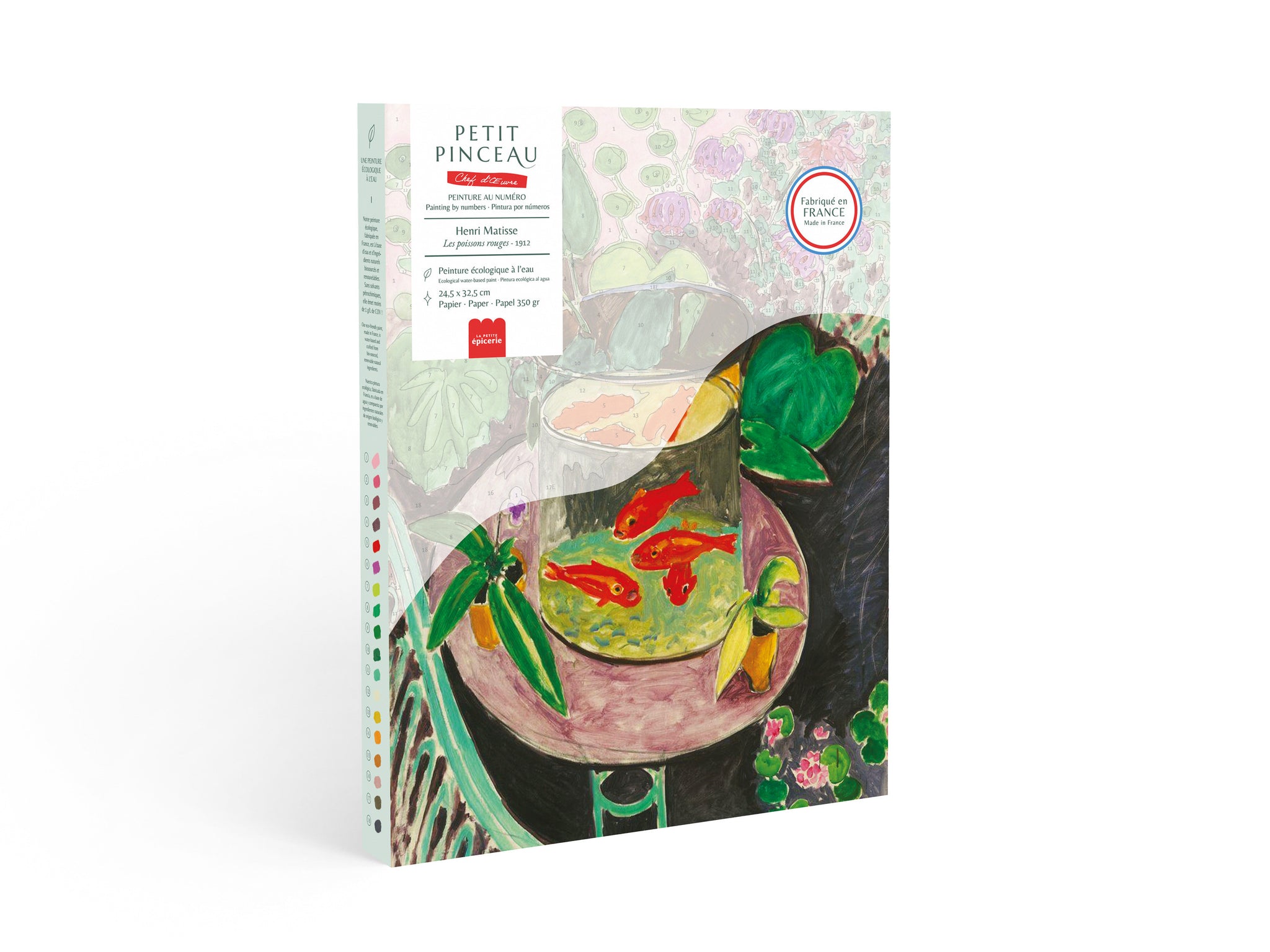 Cher à ’univers de Matisse, ce modèle met en scène des poissons rouges au cœur d’une composition végétale expressive. Les aplats de couleurs franches offrent un plaisir de peinture immédiat et un rendu résolument contemporain. Un visuel fort, idéal pour dynamiser une offre loisirs créatifs et séduire une clientèle sensible aux oeuvres d'art.