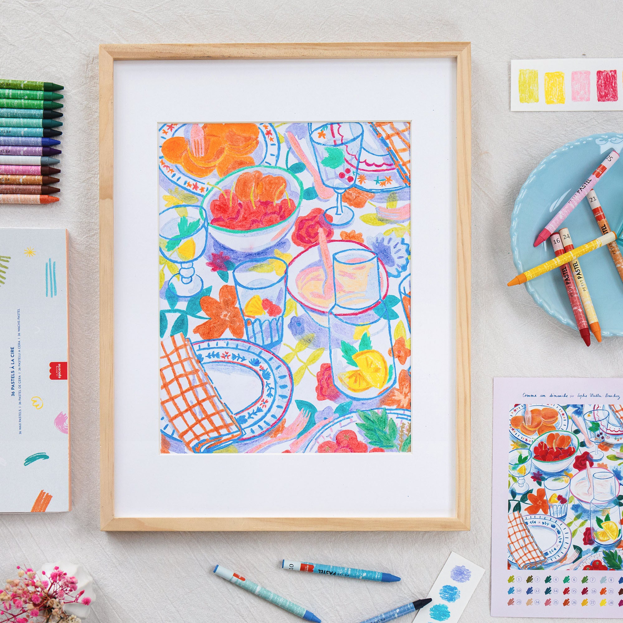- 1 boîte de 36 pastels couvrant toute la palette du motif