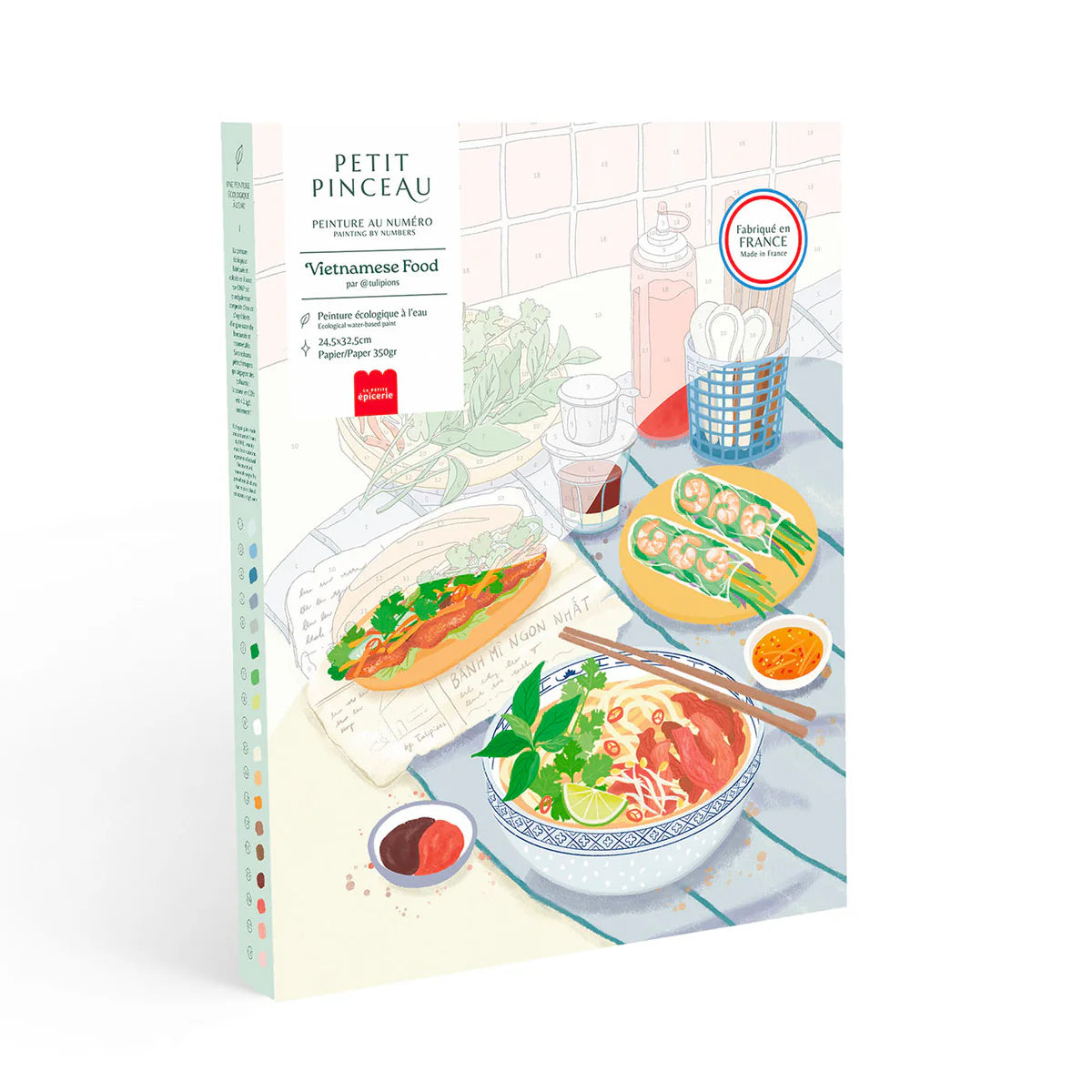Le kit complet contient tout le matériel nécessaire pour peindre l’illustration, au format 24,5 x 32,5 cm.