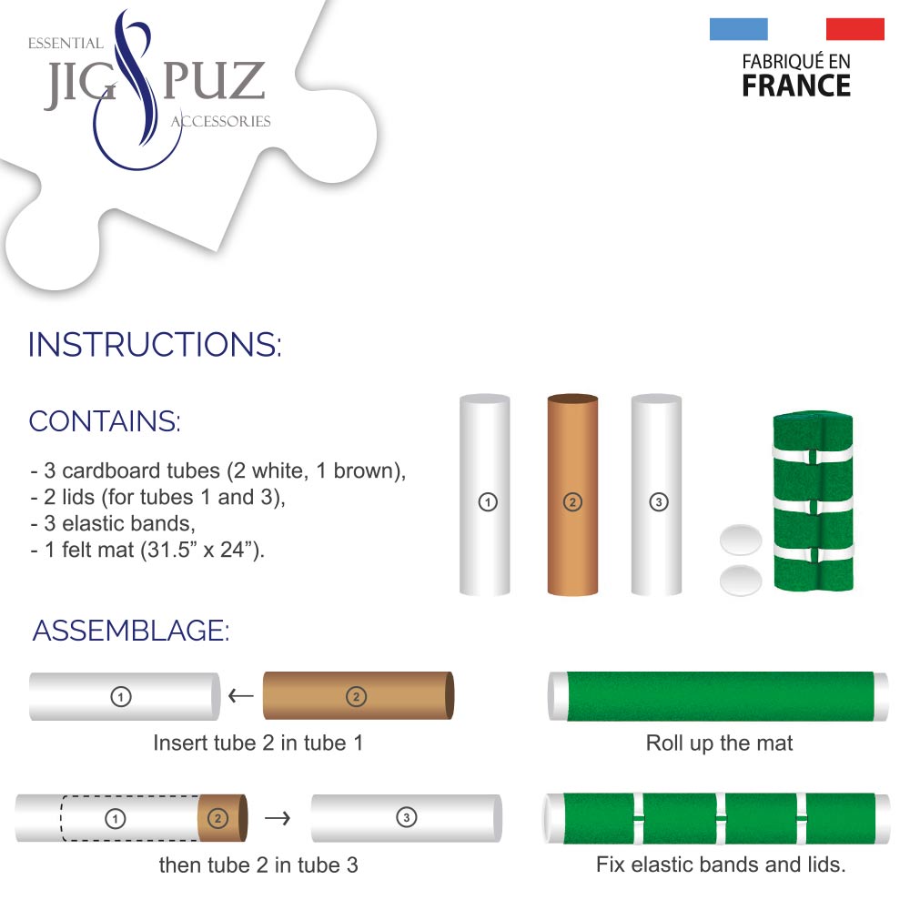 Ce tapis vous permettra de réaliser des puzzles de 300 à 1000 pièces maximum. Le système idéal pour ranger votre puzzle à tout moment sans le défaire. Dimensions du tapis déroulé : 80X61cm