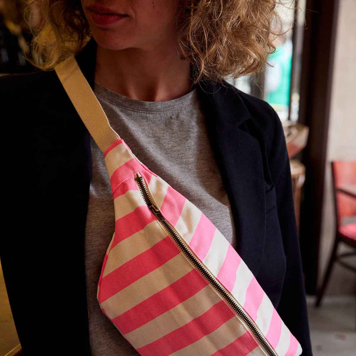 SAC BANANE - BANANE COLORIS RAYURE rose fluo 100% COTON DIMENSION FABRIQUE AU PORTUGAL CERTIFIE OEKO TEX Composition: canvas 100% coton, popeline 100% coton. sac à main femme / cadeau de Noël / sac / sac bandoulière / sac banane / banane sac / sac leopard