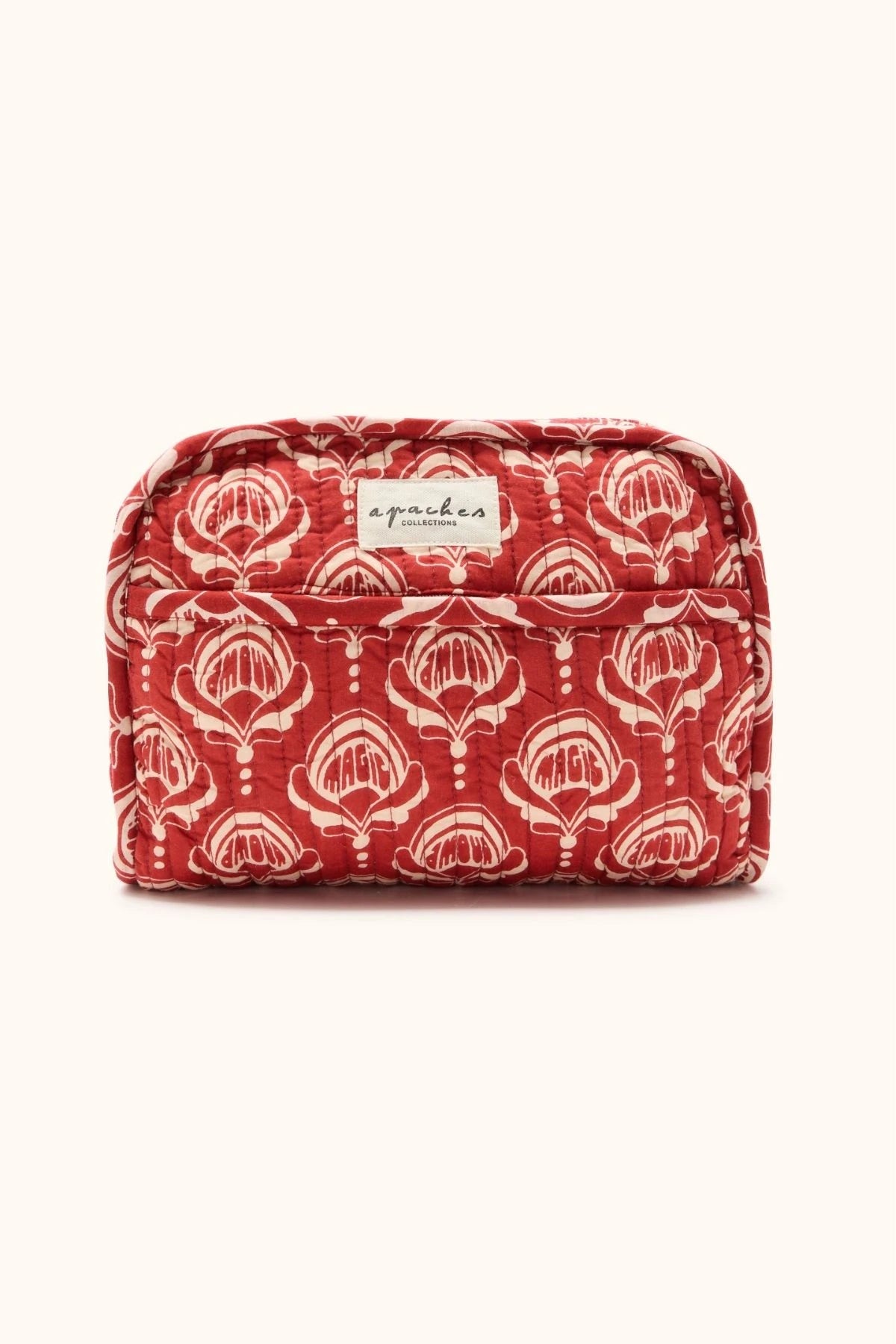 Adoptez la trousse Rahana en imprimé Fire Rouge, au motif vibrant et plein de caractère. Son format pratique et sa poche avant permettent de garder à portée de main maquillage, soins ou petits trésors. Un accessoire audacieux et fonctionnel, parfait pour ajouter une touche de style à vos journées.