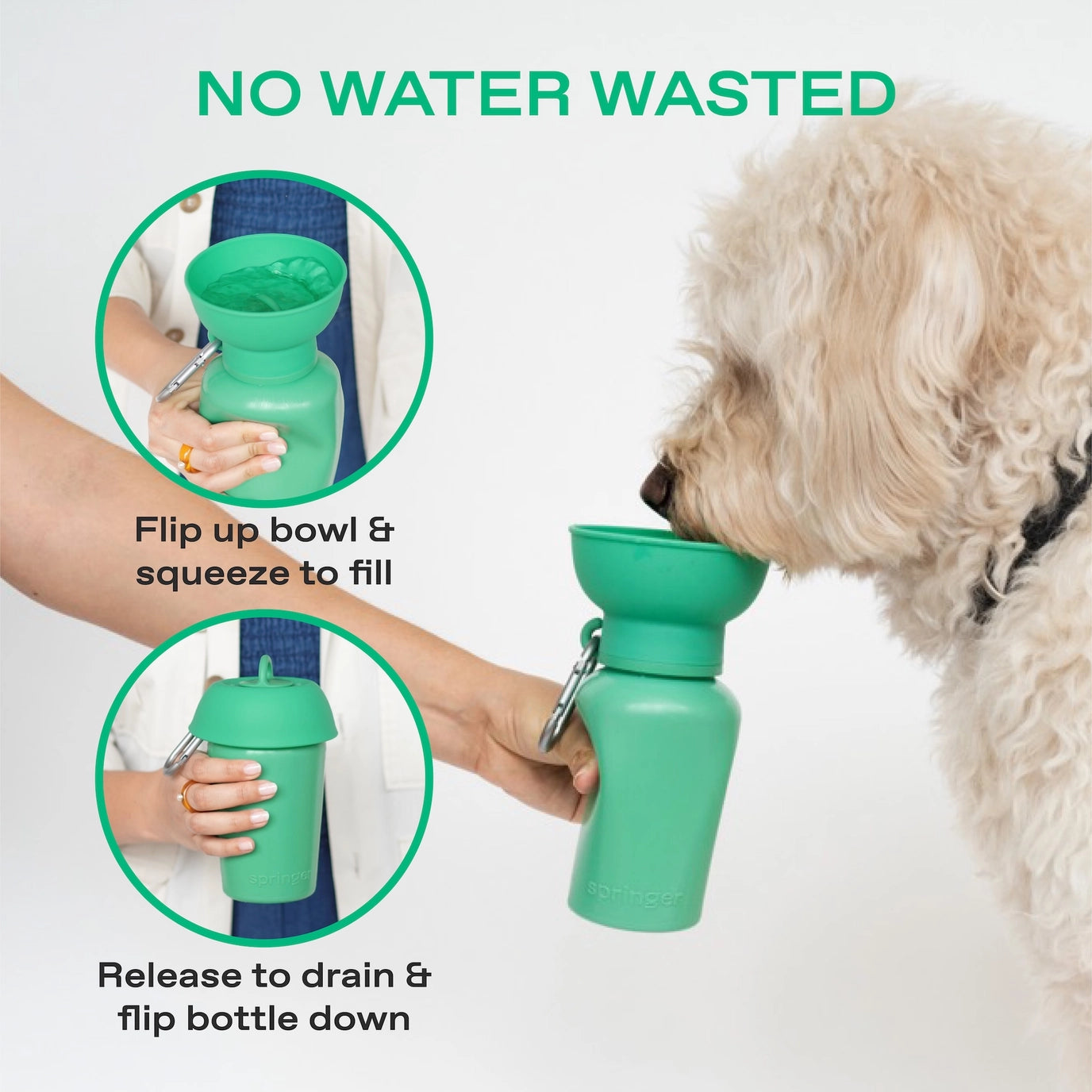 Bouteille d'eau de voyage pour chien primée Springland, anciennement Springer Dog Travel Water Bottle - vue dans Shark Tank et les objets préférés d'Oprah ! Ne vous inquiétez plus de l'hydratation de votre chien. Que vous fassiez de la randonnée en montagne, exploriez des plages ou partiez en road trip, garder votre chien correctement hydraté ne devrait pas être une préoccupation constante. La bouteille d'eau de voyage pour chien vous offre une hydratation instantanée où que vos aventures vous mènent. Notre design breveté à presser pour boire vous permet de fournir de l'eau fraîche d'une seule main - il suffit de presser pour remplir le bol attaché, puis de relâcher pour drainer automatiquement l'excédent à l'intérieur. Pas de désordre, pas de gaspillage, pas de soucis ! Plus de 350 000 propriétaires de chiens font confiance à cette solution primée pour une hydratation fiable à chaque aventure. Livrée avec un mousqueton pour un accrochage facile à votre sac ou laisse. Bouteille d'eau de voyage pour chien 20oz Flip - Assortiment de 12 - Couleurs assorties fixes : 2 de chaque Bleu Ciel, Myrtille, Vert, Avoine, Noir et Lilas Caractéristiques : Hydratation à une main partout : Pressez pour fournir instantanément de l'eau fraîche, relâchez pour arrêter le flux - pas de tracas avec des bols ou des tasses Aventure sans limites : Parfait pour les randonnées, les journées à la plage, les voyages de camping et les longues promenades lorsque les sources d'eau ne sont pas disponibles Ne vous inquiétez plus des déversements : Le design verrouillable anti-fuite garde votre sac et votre équipement au sec Sûr pour la santé de votre chien : Matériaux de qualité alimentaire sans BPA que vous pouvez utiliser en toute confiance chaque jour Se clipse partout où vous allez : Le mousqueton s'attache aux sacs à dos, laisses ou ceintures pour un accès instantané Nettoyage facile, plus de temps pour l'aventure : Design lavable au lave-vaisselle signifie moins de temps de nettoyage, plus de temps d'exploration (uniquement sur le panier supérieur) - La bouteille contient 20oz d'eau | 591 mL - Compacte, pliable et légère - Pressez pour hydrater et relâchez pour drainer - Parfaite pour les promenades, courses, randonnées + voyages - Fermeture étanche - Inclut un mousqueton - Sans danger pour les aliments et sans BPA - Pas de gaspillage d'eau - S'adapte au porte-gobelet de voiture - Lavable au lave-vaisselle Spécifications : - Contient 20oz d'eau | 591 mL Produits personnalisés pour animaux de compagnie, collier pour chien personnalisé, produits de magasin pour animaux, produits de section pour animaux, équipement pour chien de qualité, produits pour chiens de petites entreprises, essentiels pour chiens, équipement pour animaux de compagnie en gros, laisse pour chien, breloques de collier pour chien, laisse pour chien mains libres, bouteille d'eau pour chien, bol portable pour chien, bol de voyage pour chien, équipement de promenade pour chien, accessoires de voyage pour chien, produits pour chiens en extérieur, essentiels pour parc à chiens, cadeaux pour amoureux des chiens, essentiels pour maman de chien, équipement pour papa de chien, équipement de randonnée pour chien, fournitures de camping pour chien, essentiels pour plage de chien, produits de voyage pour animaux de compagnie, équipement d'aventure pour chien, cadeaux pour chiens actifs, cadeaux de vacances pour animaux de compagnie, cadeaux d'anniversaire pour chien, essentiels de vacances pour animaux de compagnie, accessoires de printemps pour chien, équipement d'été pour chien, aventures adaptées aux chiens, incontournables pour parc à chiens, équipement extérieur pour chien.